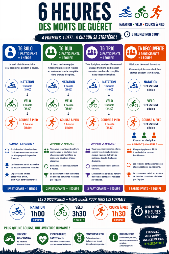 Triathlon S format multi enchaînement : à partir de la catégorie cadet(te)s (nés en 2008 et avant).
